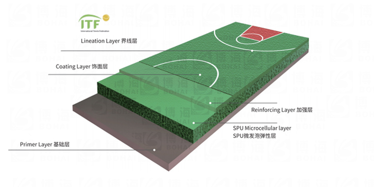 由PU彈性層BH-CS01、加強層和水性面漆耐磨層BH-WB01刮涂組成,該結構具有優(yōu)越物理性能,滿足人體工學的彈力科技,色彩美觀,施工方便、耐候性能強,防滑性好、容易保養(yǎng)的有點。