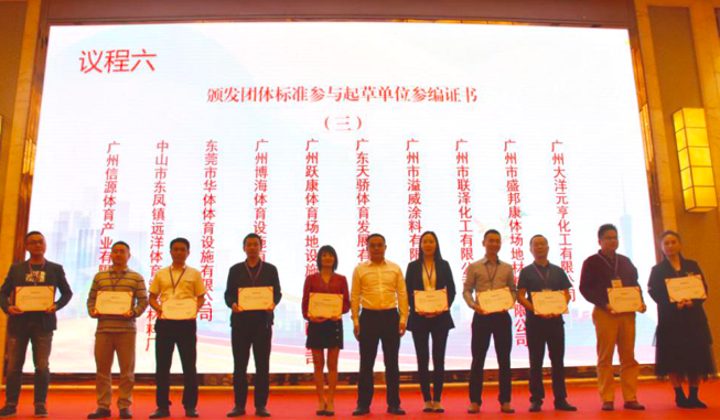 2020年11月24日,廣州市質量強市工作領導小組辦公室牽頭舉行的運動場地合成材料面層產品質量提升工作成果暨團體標準發(fā)布會在番禺美麗豪酒店召開。廣東省體育設施制造商協會承辦,廣州博海體育設施有限公司等企業(yè)代表出席了大會。